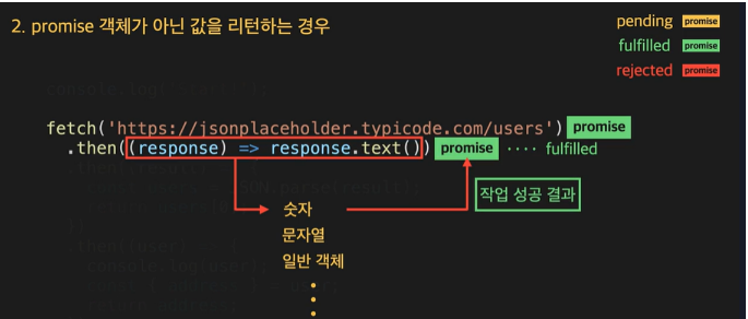 2.promise 객체가 아닌 값을 리턴하는 경우