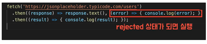 .then((response) => response.text()) //2 x -> 상태가 rejected이기 때문에
