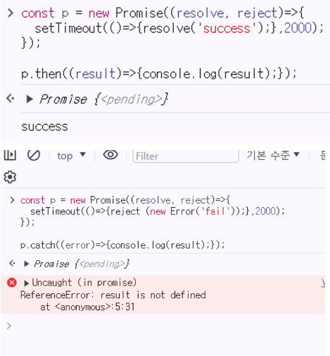 • promise 객체를 보면 작업이 성공했는지 실패했는지를 알 수 있다