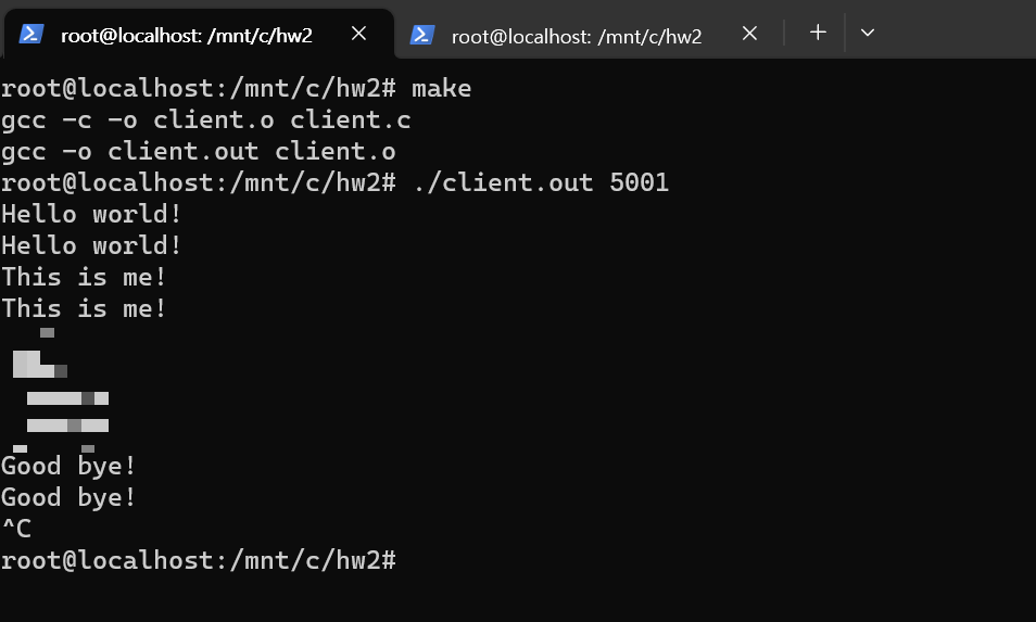 클라이언트가 Hello world!, This is me! 등의 문자열을 입력하면, 이를 서버가 수신하여 화면에 출력한 후, 다시 이를 그대로 클라이언트로 회신하여 클라이언트가 이를 다시 화면에 출력해주는 프로그램을 구현한다