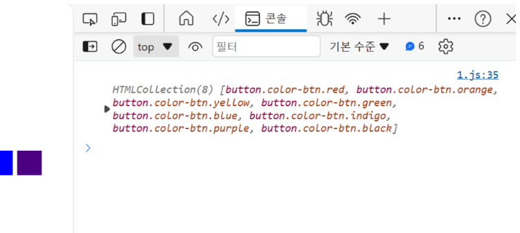 • 없는 값을 리턴하면 null값이 리턴되는 것이 아니라 비어있는 HTMLCollection이 출력된다