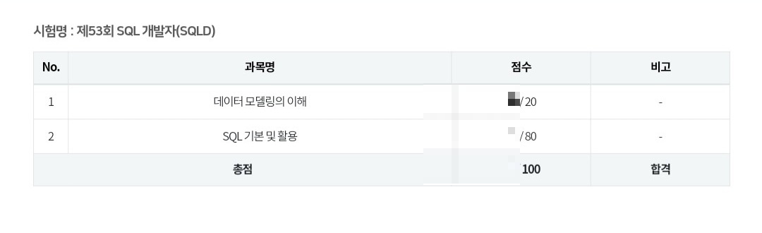 안녕하세요 제 53회 Sqld에 합격했습니다