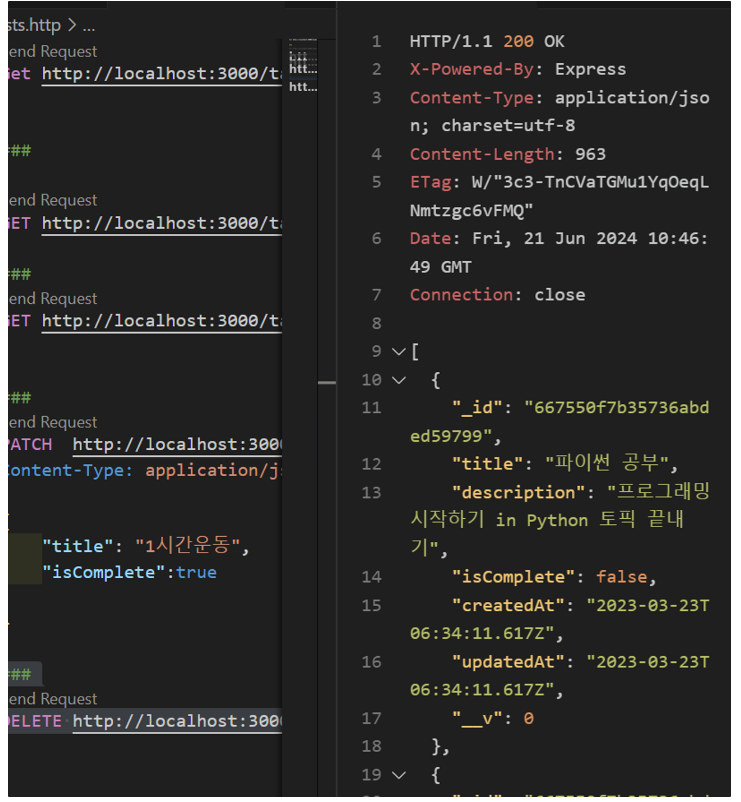 • .findByIdAndDelete() 메소드를 이용해서 객체를 가져오는 것과 동시에 객체를 삭제할 수 있다.