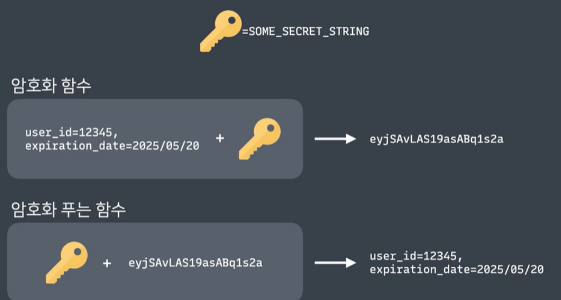 서버만 알고있는 문자열인 비밀키를 사용해서 암호화한다