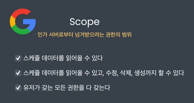 인가 서버를 설정할 때 Scope를 정의해놓으면, 유저는 딱 해당 범위 안의 권한만 위임할 수 있다