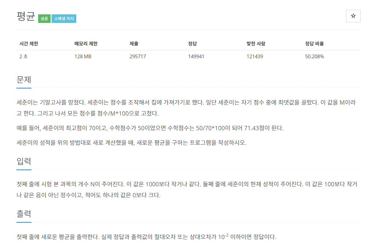 즉 총합*100/최대값/3이 출력값이 되어야한다.
