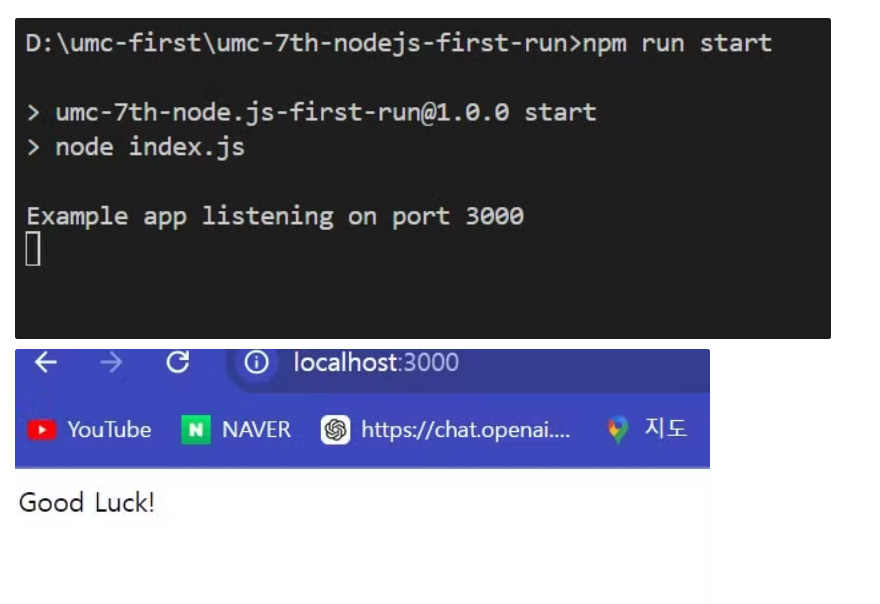 → localhost:3000으로 접속하여 서버 실행을 확인함